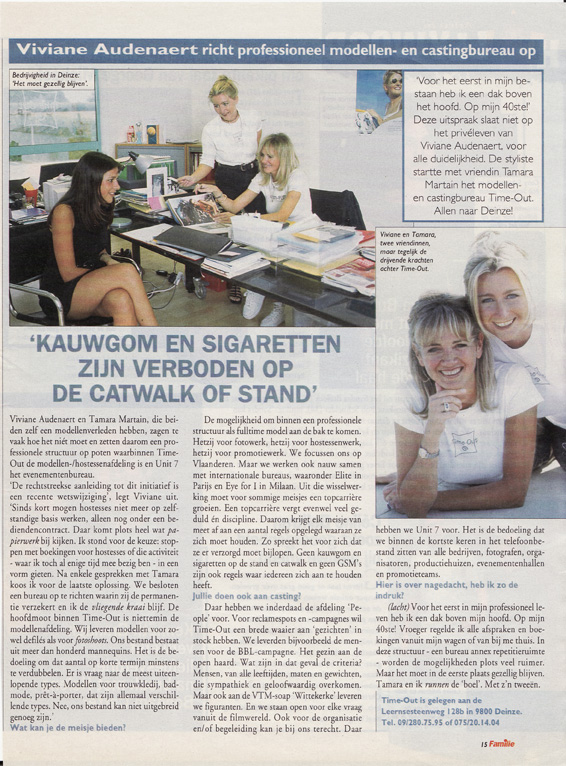 In 1990 startte ze haar eigen hostessen- en mannequinbureau TIME-OUT, samen met Tamara Martin